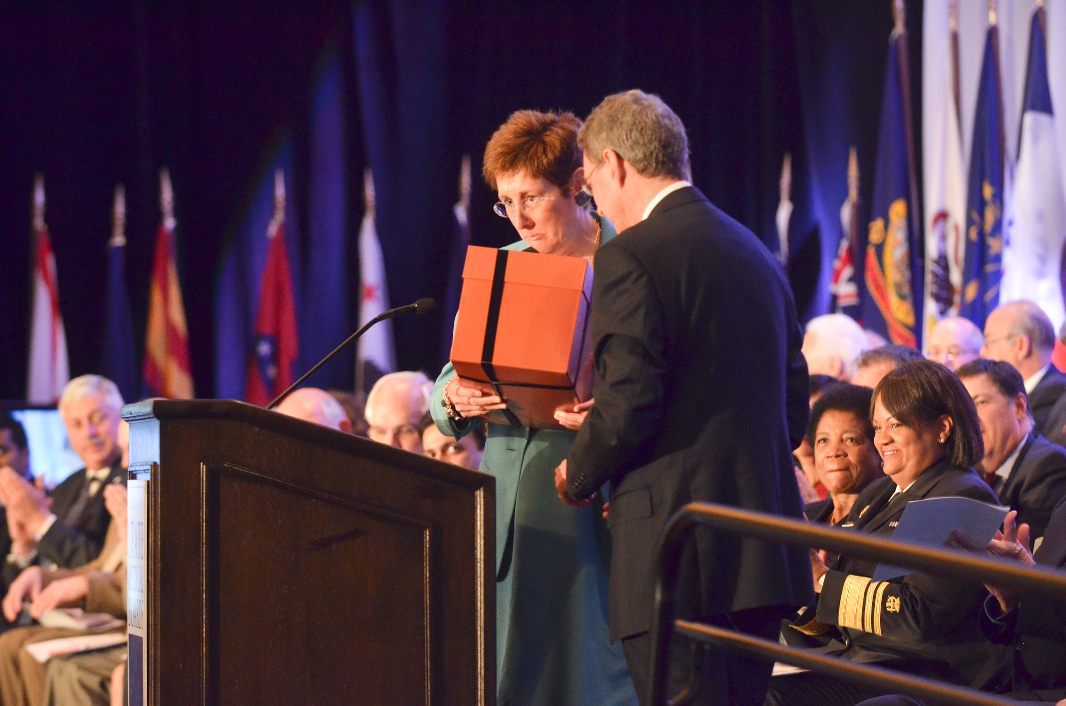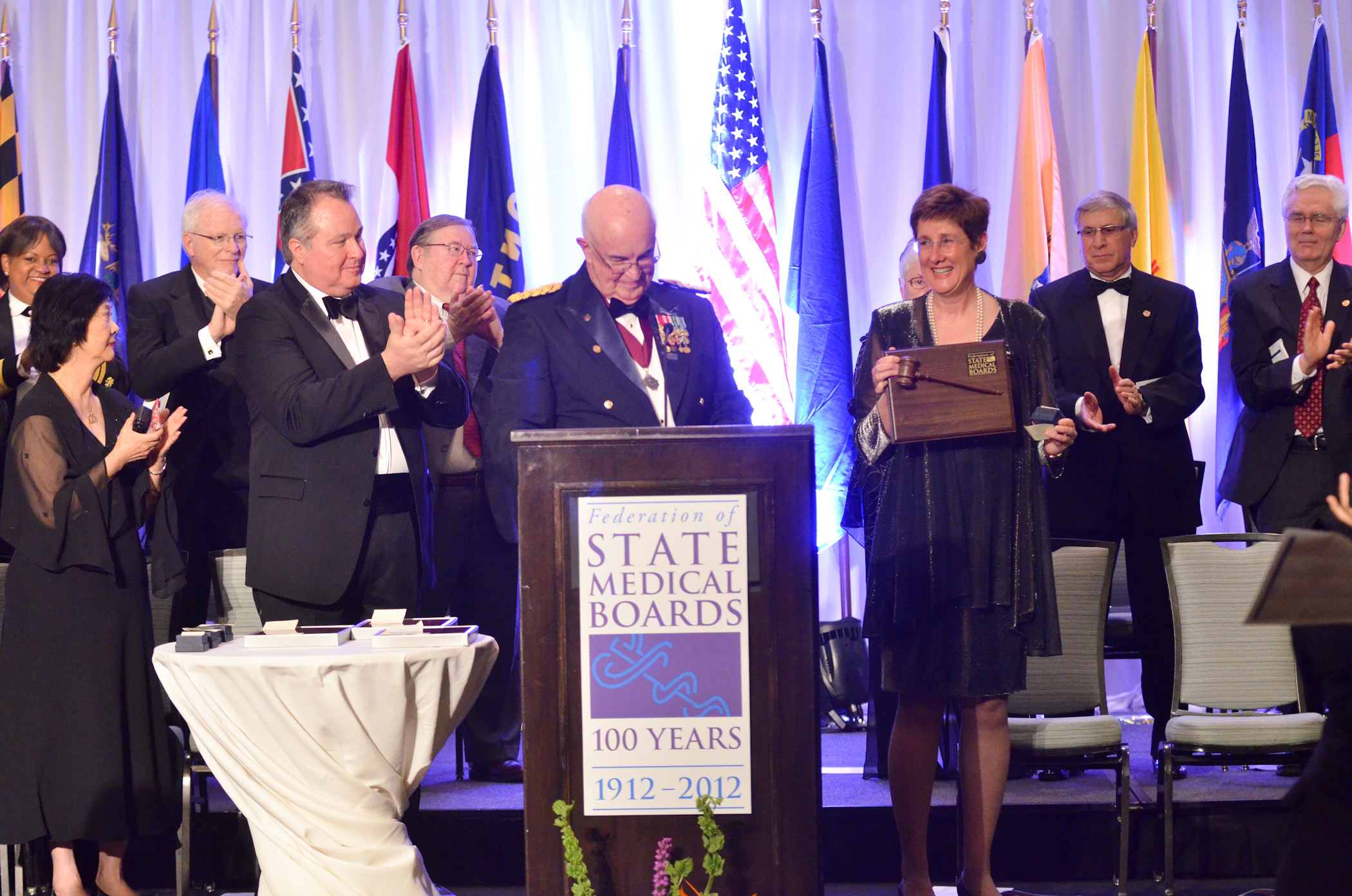 A representative of the MCC presented Dr. Rhyne and FSMB with a crystal bowl on the occasion of the FSMB's centennial
