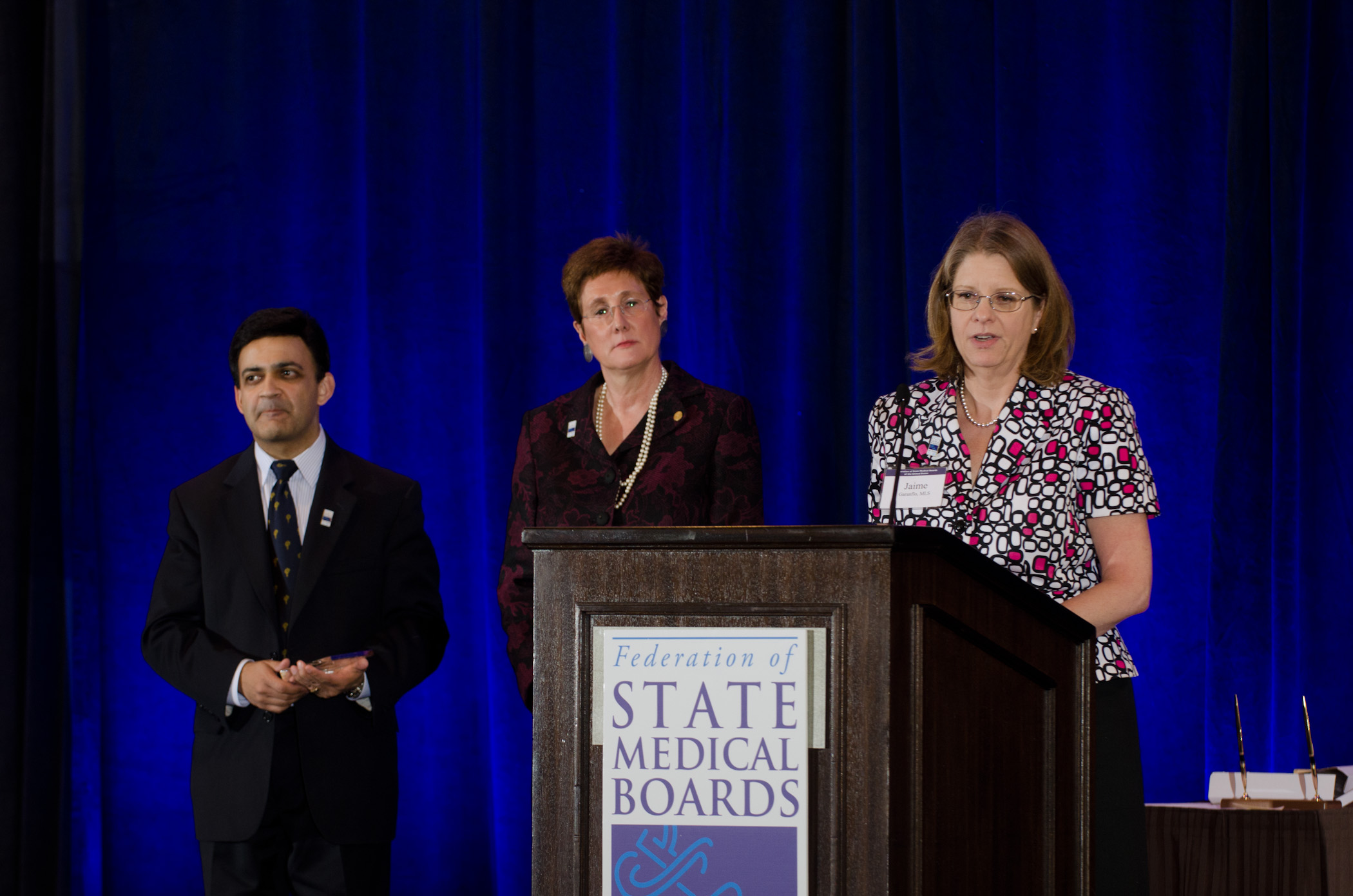 Former Texas medical board staff member, Jaime Garanflo, was honored by FSMB with the Meritorious Service Award