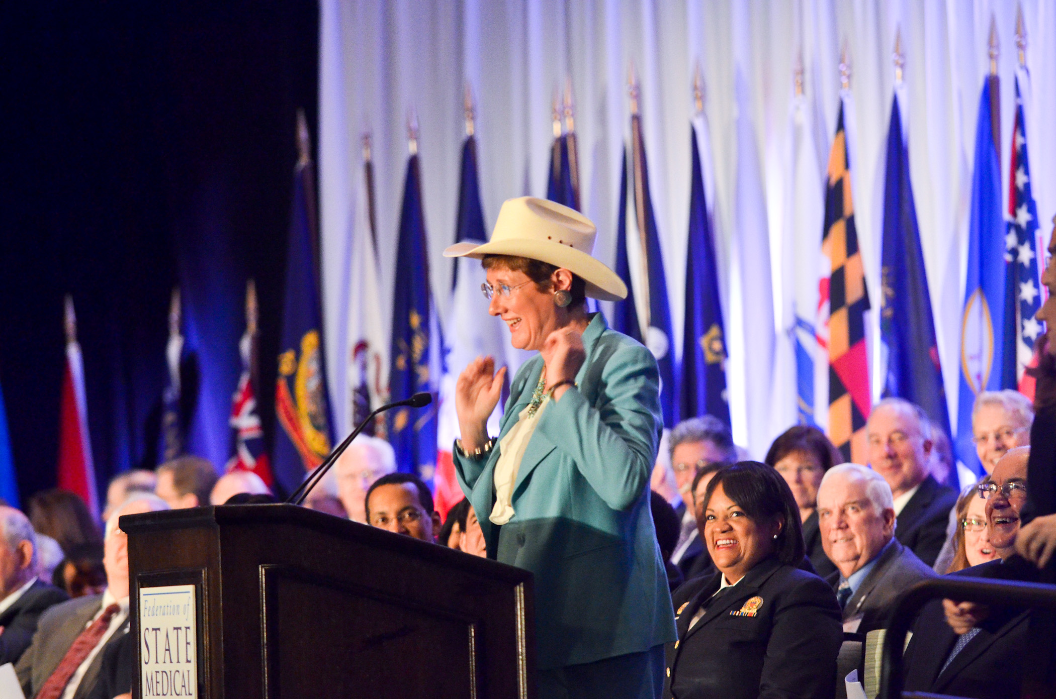 Janelle Rhyne, MD, MA, MACP, opens the 100th meeting of the FSMB on April 26, 2012 in Fort Worth, Texas