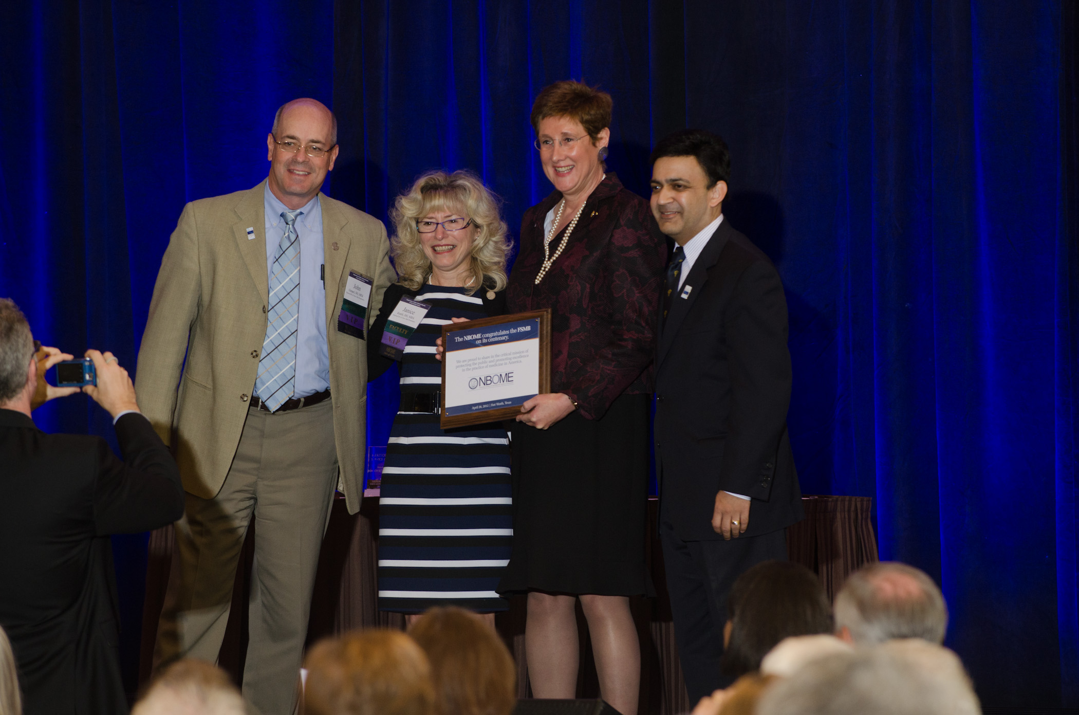NBOME President Dr. John Gimpel and Chair Dr. Janice Knebl presented the FSMB with a plaque commemorating its centennial